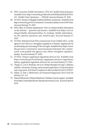 In the United States more than 30 million persons have diabetes and over 80 million have prediabetes. Many of these individuals report they have used complementary and alternative medicines (now called complementary health approaches by the National Institutes of Health) to treat their diabetes or its comorbidities. These complementary health approaches include supplements. In this reality, clinicians are encouraged to understand potential issues that may arise with supplement use, know what research is available, and be prepared to guide their patients and answer their questions about supplements and alternative modalities.