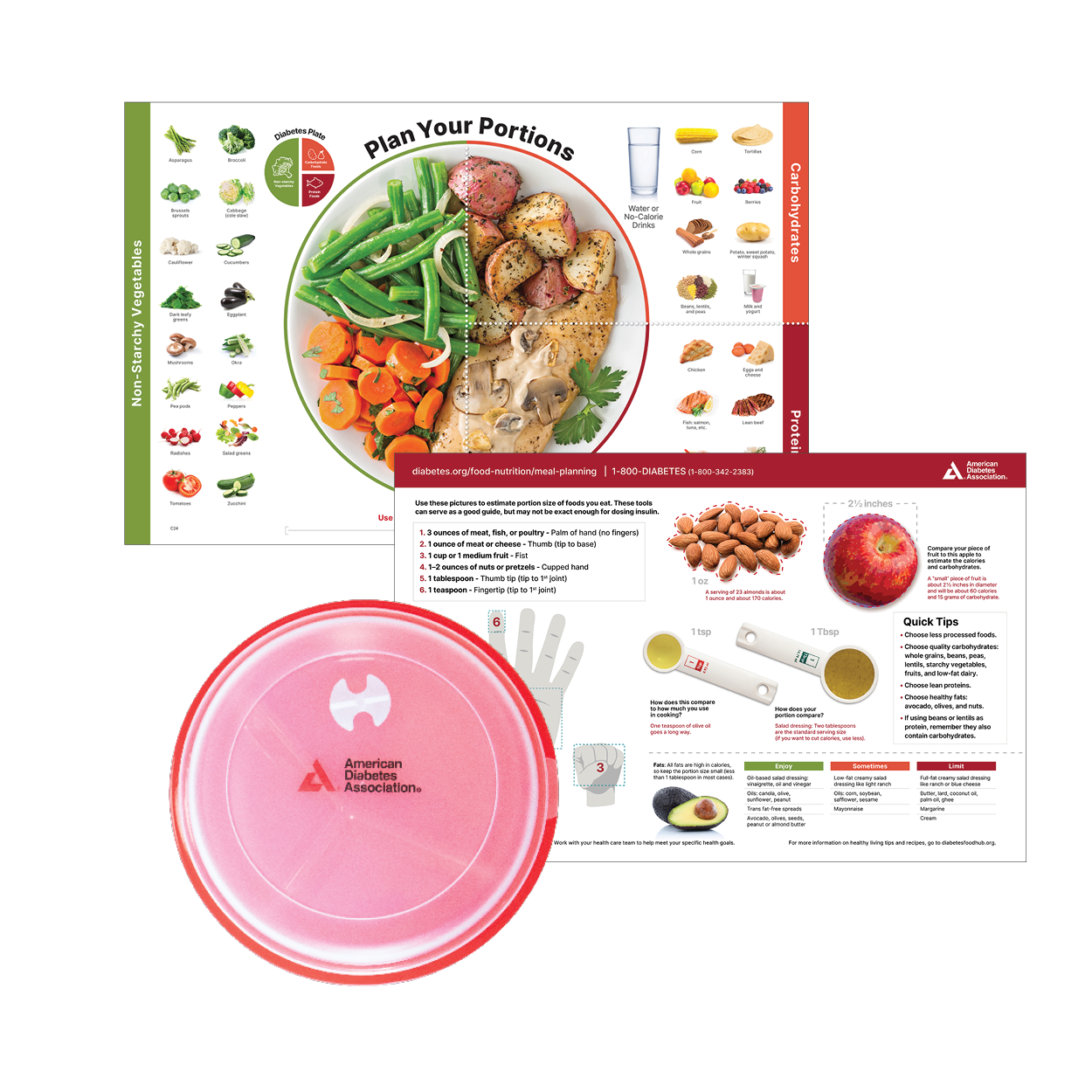 The American Diabetes Classic Placemat & Portion Plate Set is the perfect combination of two best-sellers, The Diabetes Placemat: Classic & The Portion Control plate. The Diabetes Placemat: Classic 25/pkg is the ideal meal planning tool for diabetes portion control. The front features a sample plate to help estimate portions, while the back has simple tools to help manage portions. Paired with our best-selling portion control plate this healthy eating bundle is perfect for healthy eating and portion control. P