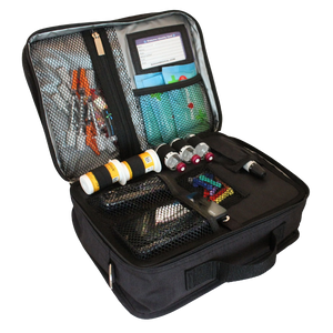 Traveling with diabetes can be overwhelming. Make travel easier with this insulated bag that allows you to SEE all of your supplies in a snap! Never worry if you forgot to pack something with this well-designed bag. The extra-deep rear storage compartment holds multiple days’ worth of supplies. Two large exterior pockets for ice packs. Perfect for travel, school, or work. Once arrive at your destination, toss the included removable day-pack/zippered pouch in your backpack or purse to carry your daily supplies while out and about.