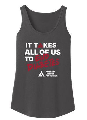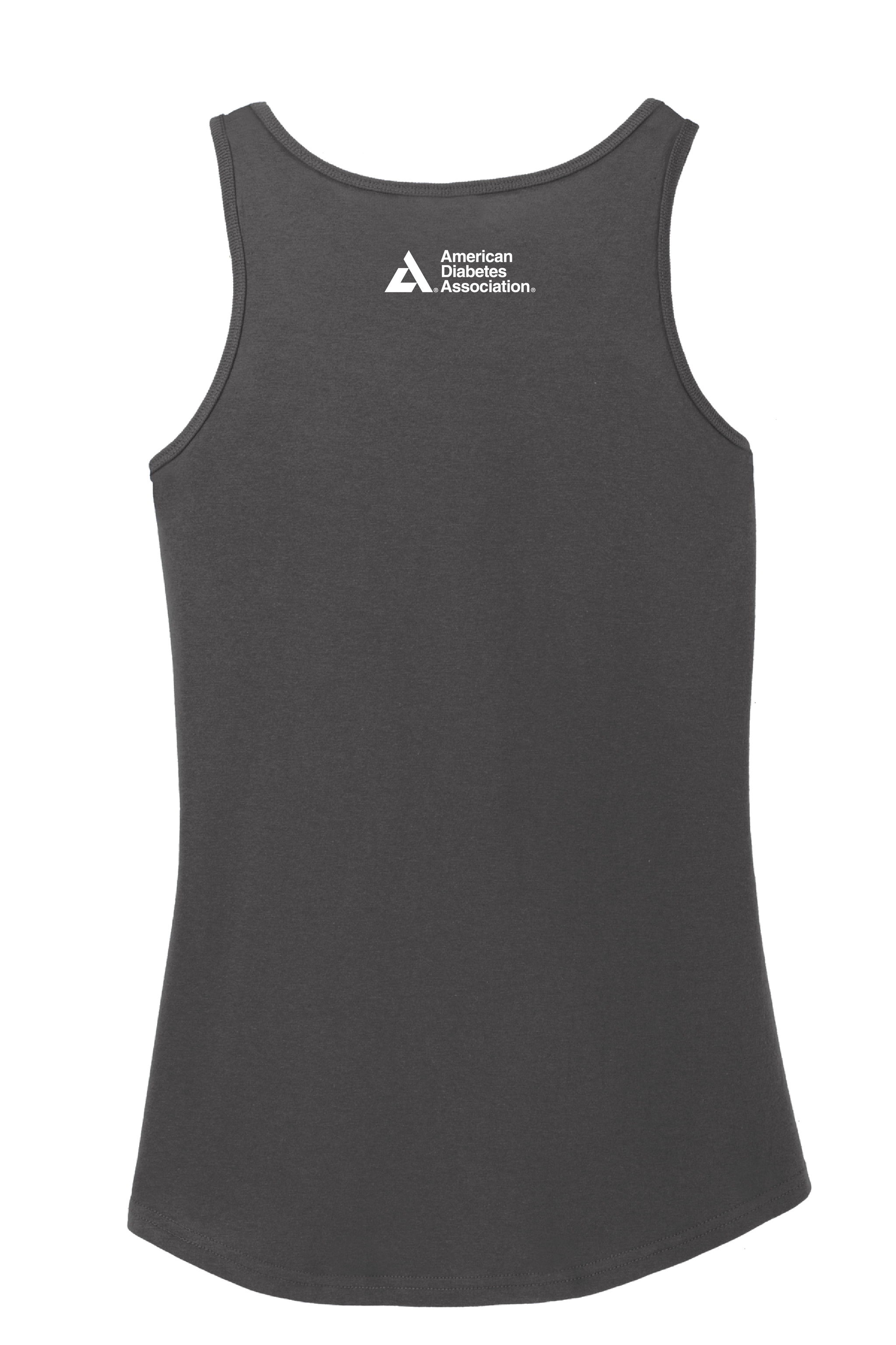 The American Diabetes Association All of Us Tank Top is a comfortable stylish 5.4-ounce cotton tank top. It features a scoop neck, side seam with contoured body and curved hem.