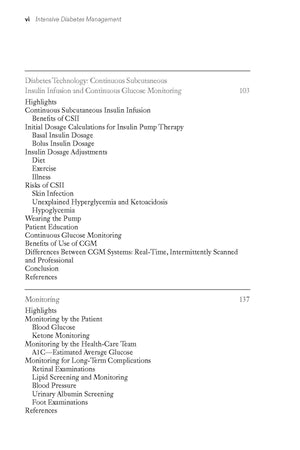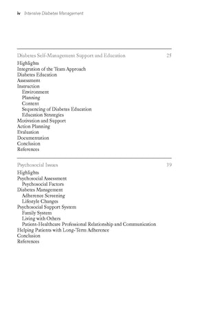 Intensive Diabetes Management emphasizes a team approach to patient care and offers guidance in helping patients move toward treatment goals appropriate for their individual skills and medical condition. Individual sections address all of the key topics in intensive diabetes management, including rationale/physiological basis, team approach, education, pyschosocial issues, patient selection/goals of therapy, insulin regimens, insulin pump therapy, monitoring, and nutrition management.